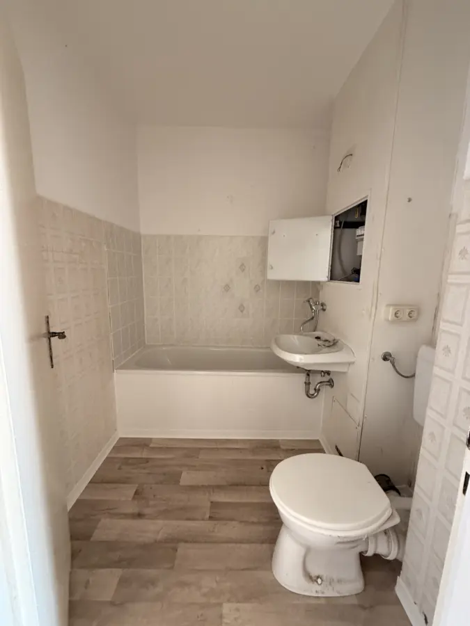 Bad Nassbereich gefliest, Badewanne, Fernheizung, Gasherdanschluss, Keller