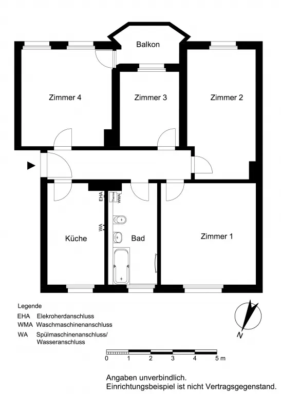 Bad mit Fenster, Badewanne, Balkon/Loggia, Einzeletagenheizung, Gasdurchlauferhitzer, Gasherdanschluss, Küche mit Fenster, Waschmaschinenanschluss