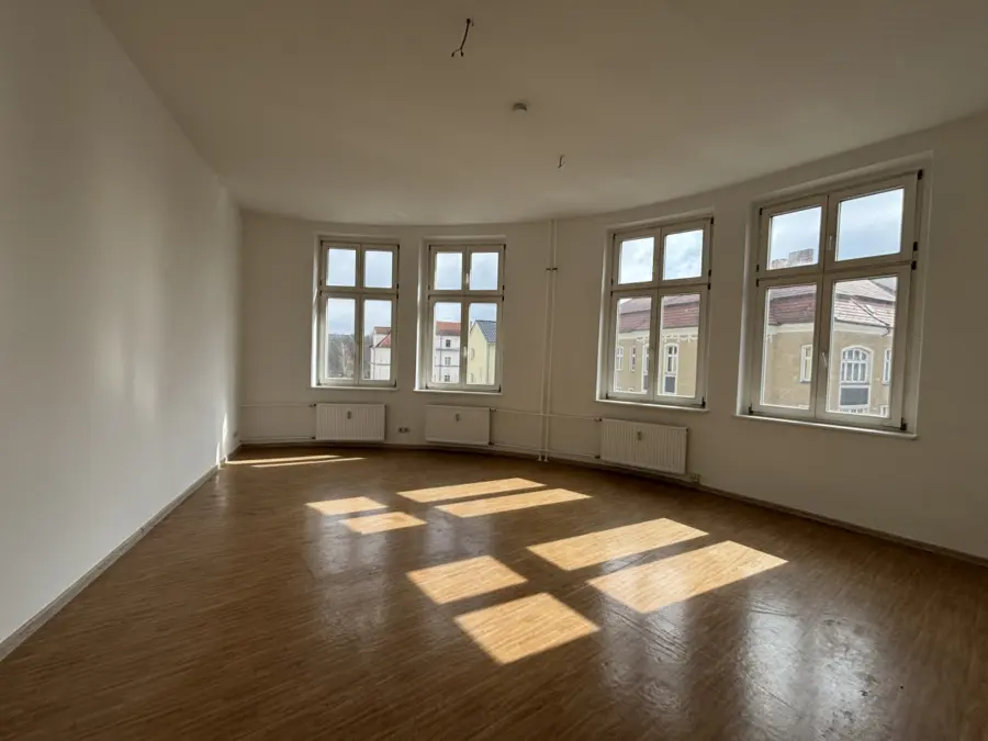 Diese 3-Zimmer-Wohnung bietet Ihnen viel Platz zum Leben auf ca. 124 m² Wohnfläche. Alle 3 Zimmer sowie das Bad und die Küche sind tagesbelichtet. Die 3 ähnlich großen Wohnräume sind nach Osten und Süden ausgerichtet, die große Wohnküche und das ebenfalls große Wannenbad nach Westen bzw. Norden. Durch die Großzügigkeit an Wohnfläche lassen sich alle Räume mit Leben füllen und bieten Platz zur individuellen Wohnraumgestaltung. Jeder Raum ist separat von einem zentralen Flur aus begehbar, es gibt keine Durchgangszimmer. Das große Erker-Zimmer ist mit schönem Parkettboden ausgestattet. Die Deckenhöhe von ca. 3 m verleiht der Wohnung zusätzlich ein schönes Raumgefühl.